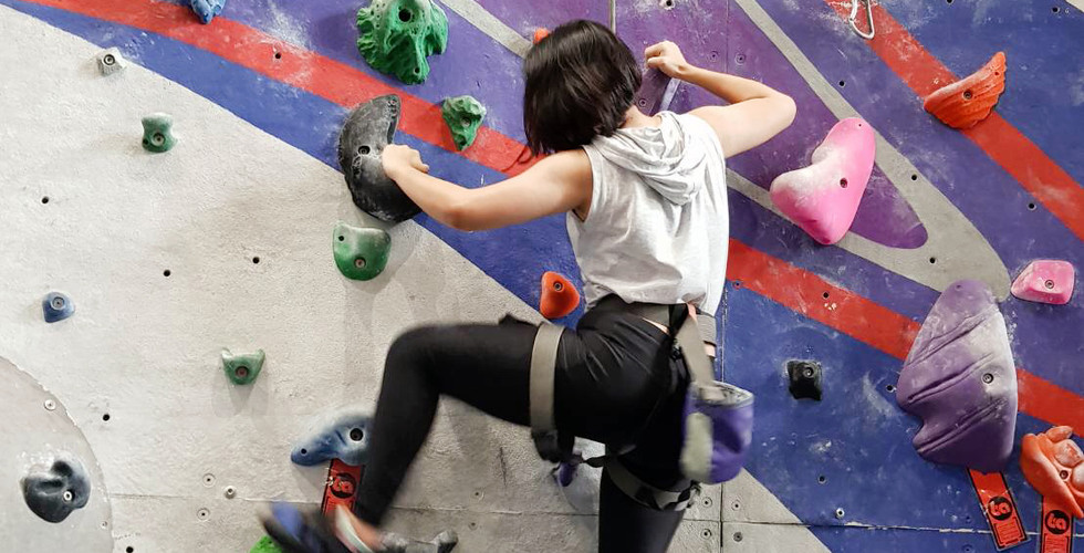 Not gonna lie, it was HARDER than I thought... I had to rely mostly on my legs while my hands were supposed to grip on freely as instructed by my trainer. I often had to feel around for the right spot just so that I could get a better grip and be hoisted up by the gear that's being controlled by my trainer. I was also given special chalk so that the texture allows me to hold on better because my hands were already sweating by how much panic I had when I was up there.